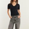 Features: Architectural side ruching; Technical snap-button base; Structural V-neckline; High-fidelity finish